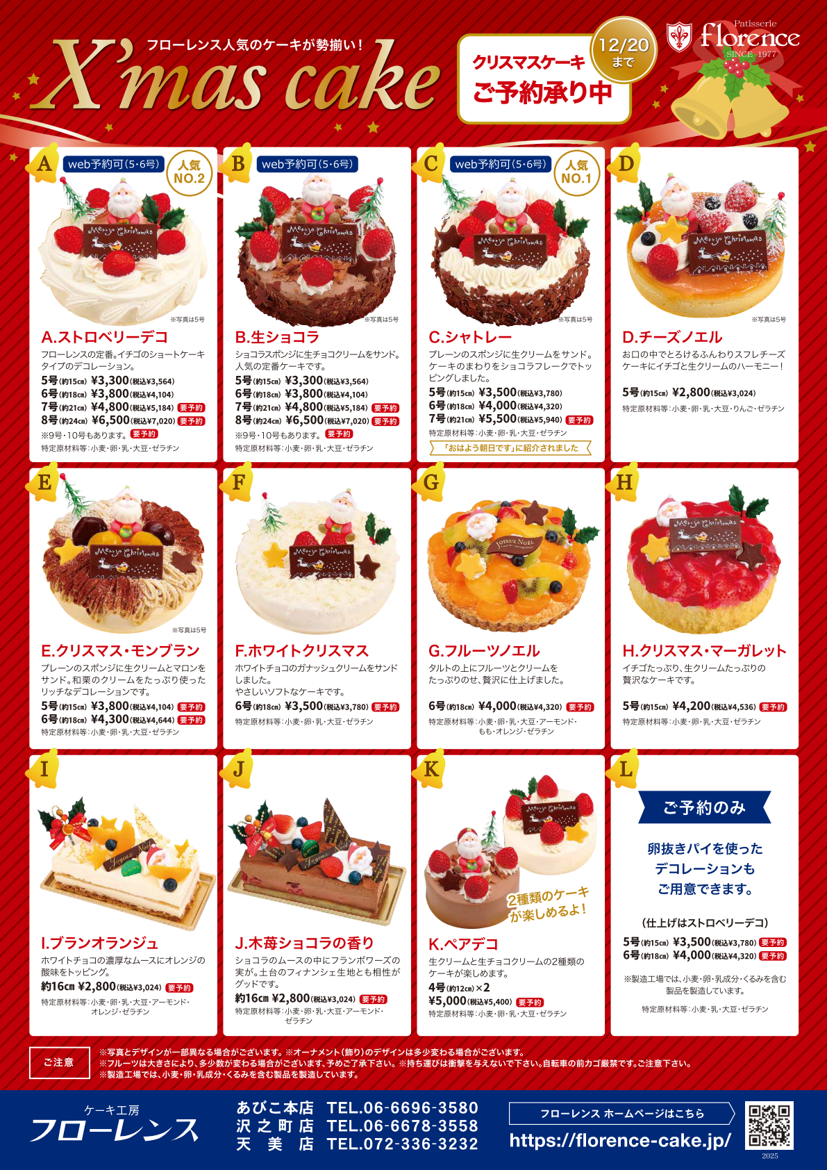 ご来店、お電話、オンラインショップにてご予約いただけます。ご予約期間~12/20(土) まで。
